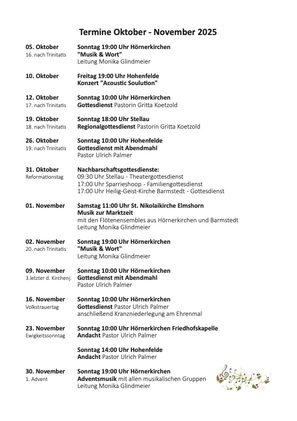 Gottesdienste Oktober und November 29. September 202513. Juli 2025Christian Schütz teilen teilen teilen