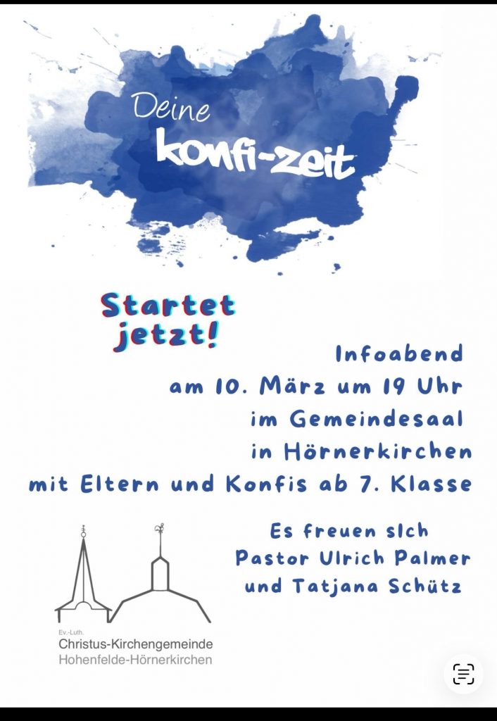 Infos für neue Konfirmanden 22. Februar 2026Tatjana Schütz Infoabend am 10. März um 19 Uhr im Gemeindesaal Hörnerkirchen. teilen teilen teilen